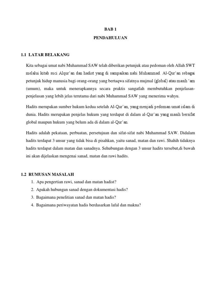 Contoh hadits yang ada sanad matan dan rawi. Imamul huda mpdi disusun oleh. Sanad sanad hadits pada tiap tiap thabaqah atau tingkatannya juga disebut para rawi. Haryo febriyanto 111 14 ayutyas sulistyani 111 14 375 fakultas tarbiyah dan ilmu keguruan program studi pendidikan agama islam institut agama islam negeri iain. Kata rawi atau arawi berati orang yang meriwayatkan atau yang memberitakan hadis. Ma yantahiy ilayhi as sanad min al kalam. Rawi adalah orang yang meriwayatkan hadist maka untuk mengetahui derajat hadist ini perlu dilihat siapa saja perawinya apakah ia dapat dipercaya dari segi kelimuan akhlak dan sebagainya.