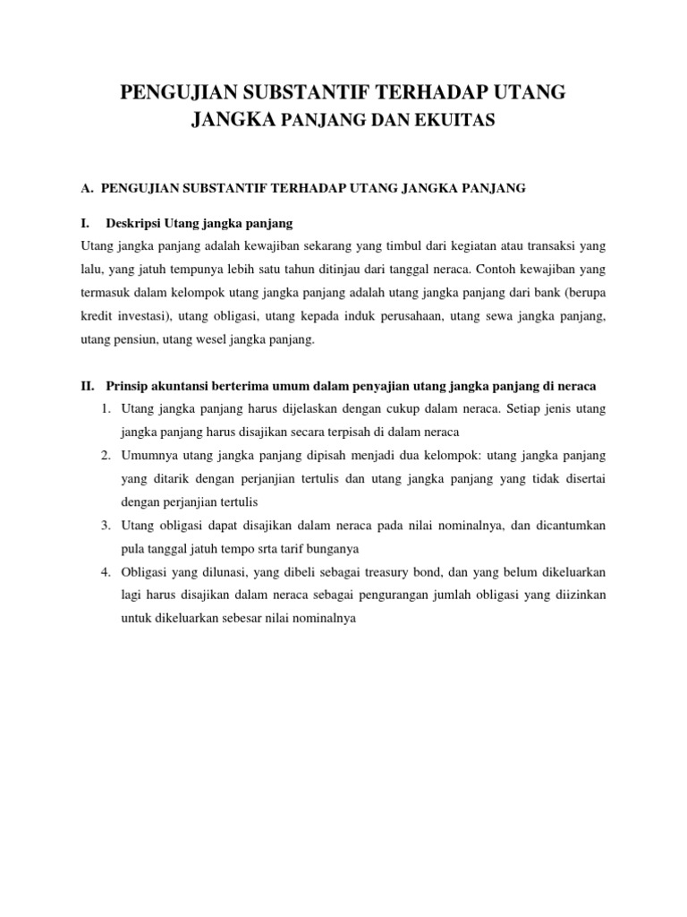 Hutang jangka jangka pendek masa pelunasannya kurang dari satu periode sedangkan hutang jangka panjang sebaliknya yakni lebih dari satu periode. Dalam operasional sebuah perusahaan rekening dengan pinjaman jangka panjang tidak akan pernah. Apakah usaha tersebut baru akan dimulai atau pada tahap pengembangan. Utang jangka panjang long term liabilities utang jangka pendek yaitu utang yang harus segera dilunasi paling lambat umur dari utang ini satu tahun atau 1 periode akuntansi misalnya 1 januari 2009 31 desember 2009. Pengertian investasi jangka panjang tujuan jenis jenis dan contoh investasi jangka panjang adalah investasi yang mana daya yang dipakai akan dijalankan terus dan dapat dicairkan apabila telah tiba jangka waktu tertentu paling cepat 1satu tahununtuk lebih lengkap nya kami akan mengulasnya mulai materi makalah pengertian investasi jangka panjang tujuan jenis jenis dan contoh. Academiaedu is a platform for academics to share research papers.