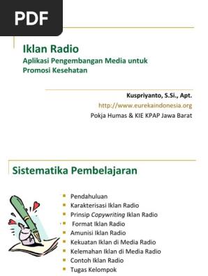 Contoh iklan di radio. Contoh iklan radio meskipun pemakaiannya tidak seramai tahun 90an namun masih ada sebagian orang yang senang mendengarkan radio. Lalu menentukkan musik atau menggunakan sound fx dengan tujuan untuk menciptakan suasana yang mendukung skenario. Radio kurang menjadi perhatian penuh pendengarnya. Lalu bagaimanakah cara membuat iklan yang menarik. Dengan demikian iklan di radio didengarkan sambil melakukan pekerjaan lain. Seperti halnya televisi radio pun menjadi salah satu benda elektronik yang bertujuan untuk menghibur pendengarnya serta terdapat contoh iklan radio untuk memberikan informasi pada pendengarnya.