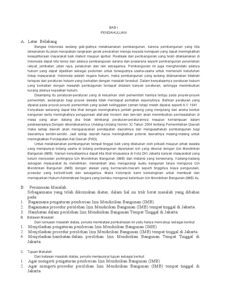 Izin mendirikan bangunan imb pelayanan dan kewenangan penerbitan imb. Mengurus imb izin mendirikan bangunan tentu saja juga akan malah mendatangkan keuntungan bagi sang pembilik bangunan contohnya dia akan tahu rencana pemerintah terhadap area di sekitar bangunan rumahnya sehingga rencana pembangunan renovasi dan lain lain dapat disesuaikan dengan hal tersebut. Arti atau pengertian imb izin mendirikan bangunan adalah produk hukum yang berisi persetujuan atau perizinan yang dikeluarkan oleh kepala daerah setempat pemerintah kabupaten kota dan wajib dimiliki diurus pemilik bangunan yang ingin membangun merobohkan menambah mengurangi luas ataupun merenovasi suatu bangunan. Selain permohonan izin ketika ingin mendirikan bangunan anda juga harus mengurus permohonan izin usaha. Imb merupakan salah satu produk hukum untuk mewujudkan tatanan tertentu sehingga tercipta ketertiban. Izin mendirikan bangunan imb adalah izin yang diberikan oleh pemerintah daerah kepada perseorangan atau badan untuk membangun 10.