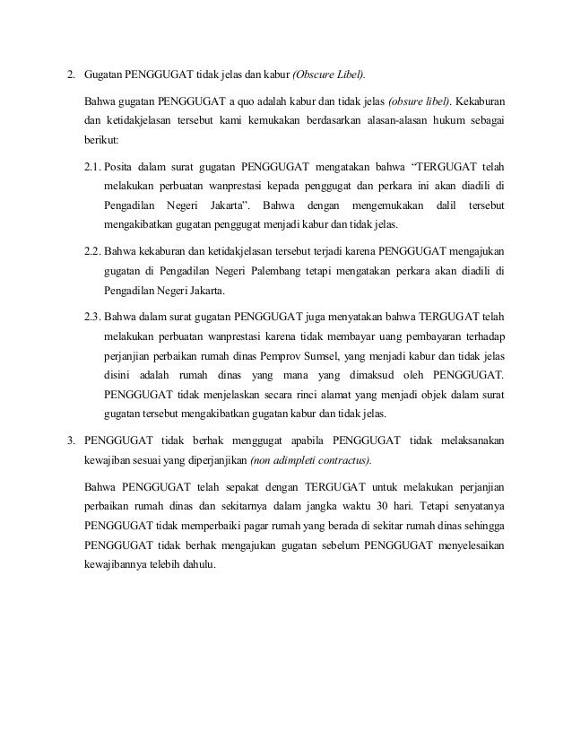 Contoh jawaban gugatan perdata. Hukum acara perdata jawaban gugatan pmh perbuatan melawan hukum. Jawaban atas gugatan adalah satu tahapan dalam proses pemeriksaan perkara perdata dan dilakukan setelah gugatan dibacakan penggugat dalam persidangan. Bahwa dalil jawaban tergugat pada poin 3 yang mengelak atas pembayaran kerjasama yang belum dibayar dan menyatakan pada tanggal 25 desember kerjasama mereka telah berakhir itu tidaklah benar. Jawaban tergugat dalam perkara perdata. Dalam perkara no630pdt g2016pn tng. Home advokasi contoh surat gugatan hukum pengadilan perdata contoh jawaban gugatan perkara perdata pmh recommended contoh jawaban gugatan perkara perdata pmh recommended pena merah 330 am no comments.