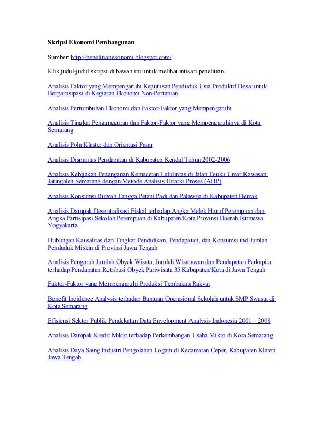 Jika anda merasa bahwa contoh ini kurang lengkap anda bisa memperoleh 750 judul contoh skripsi ekonomi secara lengkap mulai dari bab i sampai bab v kesumpulan dan saran. Contoh judul skripsi ekonomi studi pembangunan paling mudah dan disenangi dosen berikut saya akan menampilkan kumpulan contoh skripsi ekonomi pembangunan atau iesp yang saya nilai sangat bagus bagus dan akan membantu temen temen semua dalam mennetukan judul skripsi ekonomi studi pembangunannya.