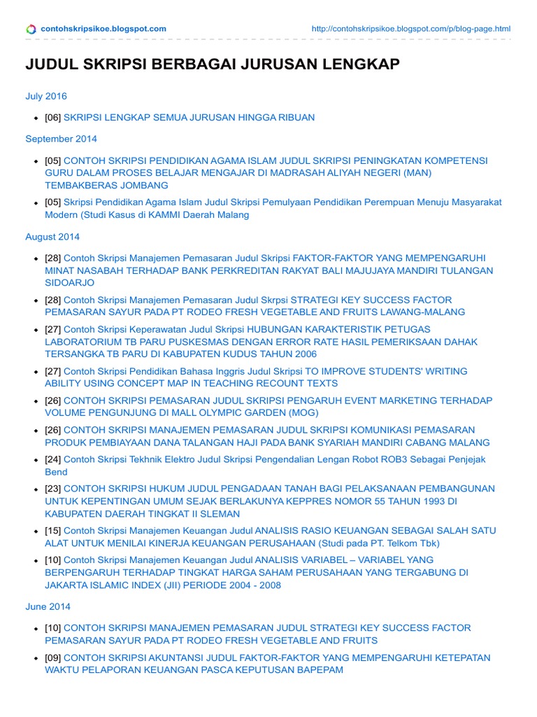 Jika kamu adalah salah satu mahasiswa tingkat akhir yang terserang galau karena judul skripsimu tidak kunjung acc atau bingung menentukan judul skripsi. Maka ada baiknya menyimak ratusan contoh judul skripsi yang terangkum dalam artikel kumpulan contoh judul skripsi pendidikan fisika. 120 contoh skripsi pendidikan agama islam pai jurusan tarbiyah kualitatif dan kuantitatif terbaru 100 link work. Setelah itu anda akan dialihkan ke halaman safelink tunggu beberapa saat hingga 100. Daftar contoh judul skripsi tarbiyah pendidikan agama islam pai terbaru mudah dikerjakan pendidikan agama dalam keluarga dan pengaruhnya terhadap akhlak siswa disekolah ulum peranan orang tua dalam mengembangkan emotional intelligenceei pada anak usia sekolah dasar dalam perspektif islam. Kami juga menyarankan agar anda mendapatkan informasi lainnya yang juga tidak kalah penting yaitu 100 contoh judul skripsi manajemen pemasaran paling menarik 2017 dan juga 150 contoh judul skripsi akuntansi perpajakan s1 terbaru.