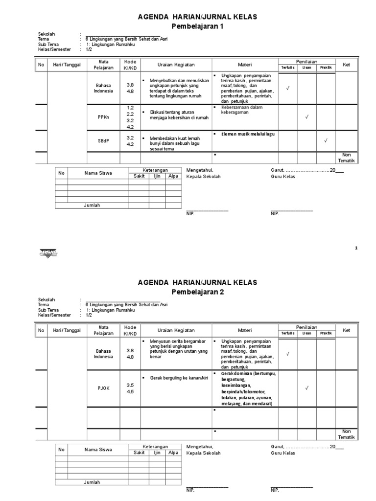 Agenda Harian Guru Sd Kurikulum 2013 Selalu Belajar