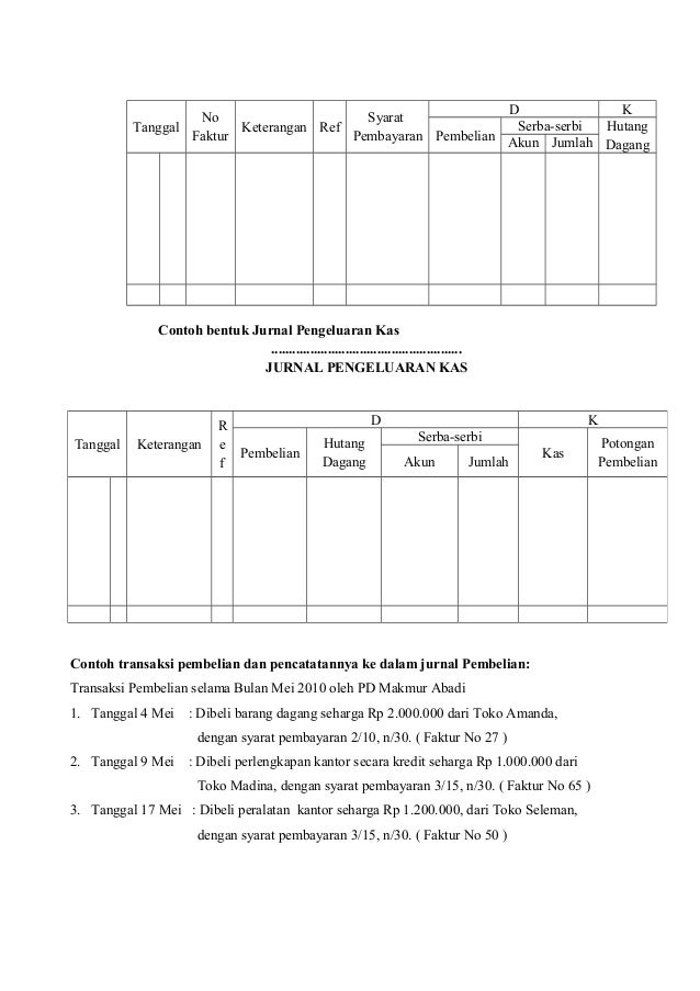 Format Jurnal Penerimaan Pengeluaran Kas Jurnal Pembelian