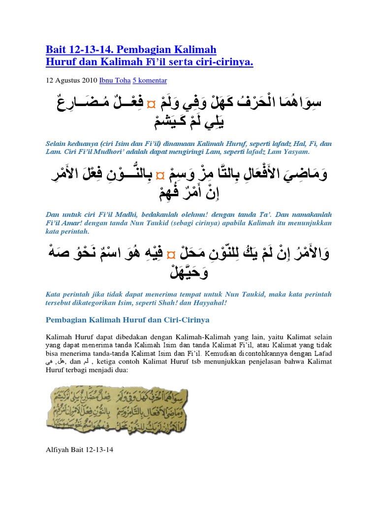 Tanda tandanya adalah dapat menerima ta fail dan ta tanits sakinah. Ad a pun isim telah kita bahas di pengertian isim beserta contoh dan ciri cirinyajuga fiil madhi telah kita bahas di fiil madhi pengertian dan contohnya. Semua fiil madhi dapat dimasuki kata قـــد yang artinya sungguh contoh. Kalimat fiil madhi bentuk kalimat fiil berdasarkan waktunya dibedakan ke dalam 3 kategori waktu yaitu fiil madhi mudhari dan amar. Kata kerja atau kalimah fil terbagi tiga. قــد اســتغـفـــرت sungguh aku telah meminta ampun 2.