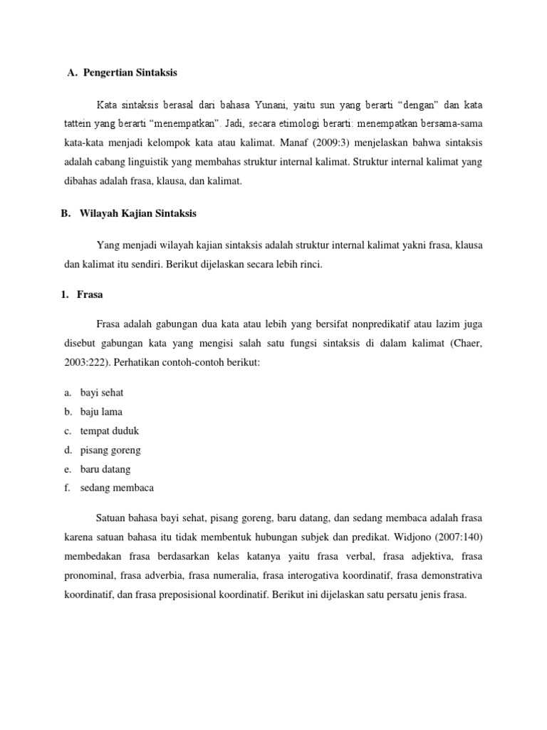 Frasa adalah satuan yang terdiri dari dua kata atau lebih yang menduduki satu fungsi kalimat. Frasa verba tidak bisa diberikan dengan imbuhan kata sangat dan biasanya menduduki fungsi sebagai predikat pada sebuah kalimat. Dia tiba ketika kamu sedang tertidur keterangan. Contoh frasa adverbial adalah sebagai berikut. Verb were sleeping subordinate conjunction when memberikan informasi tentang adjective. Frasa ambigu adalah frasa yang mempunyai makna lebih dari satu makna ganda dalam penggunaan kalimat.