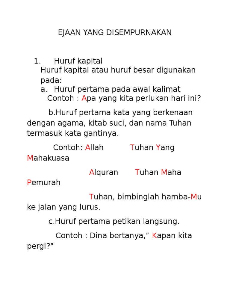 Penulisan huruf kapital harus benar dan sesuai dengan penggunanaya. Salah satu meterinya adalah berkaitan dengan penggunaan huruf kapital. Padahal sebenarnya huruf kapital tak hanya dapat digunakan pada awal kata pertama saja tapi juga pada kata kata setelahnya akan tetapi penggunaan dan penulisannya harus sesuai dengan kondisi dan aturan tertentu yang telah ditetapkan. Kemanusiaan yang adil dan beradab. 10 volt 5 ampere mesin diesel garam inggris gula jawa jeruk bali. Sebelumnya kita telah mengetahui beberapa contoh penggunaan huruf miring dalam kalimat.