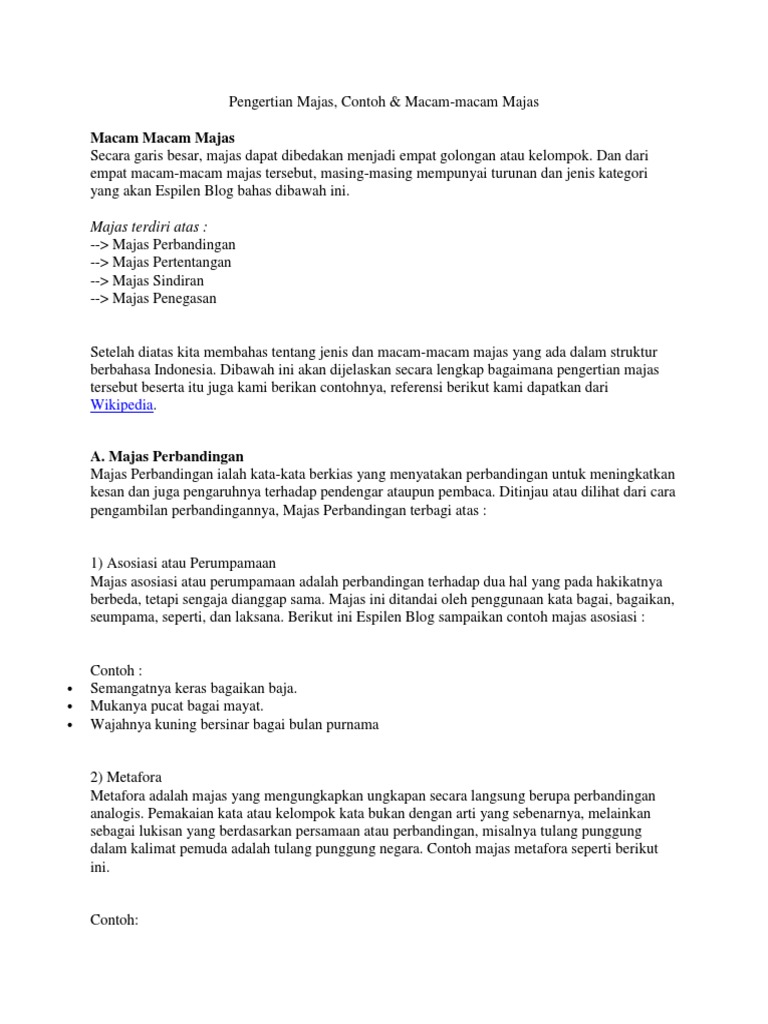 Contoh kalimat majas simile. Kata kata yang keluar dari mulutmu benar benar tajam dan menyakitkan hatiku bagaikan disayat pisau belati. Majas merupakan salah satu gaya bahasa dalam bahasa indonesia yang biasa di gunakan untuk menceritakan atau menggambarkan sesuatu dengan lebih imaginatif. Persahabatan bagai kepompong hal yang tak mudah berubah jadi indah. Kepala sekolah guru dan siswa juga hadir dalam acara syukuran itu. Majas sendiri ada beberapa macam jenisnya dan tentunya beda beda arti dan penggunaannya. Di kota dan desa hingga pelosok kampung semua orang merayakan hut ri ke 62.
