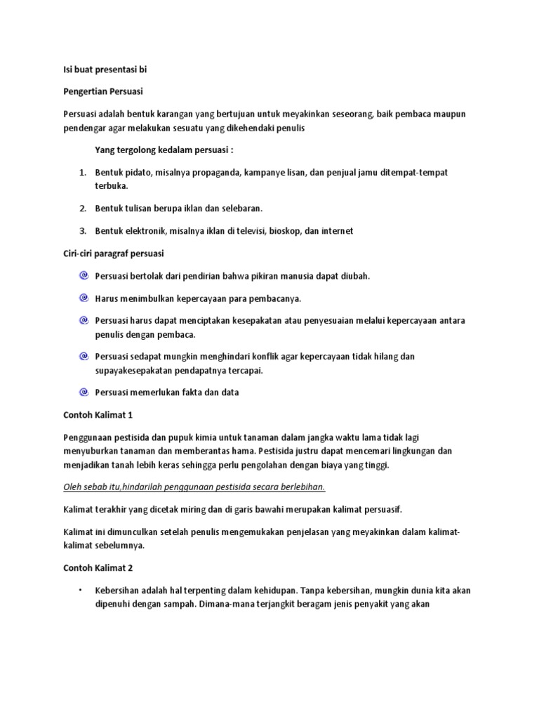 Buanglah selalu sampah pada tempatnya agar lingkungan tetap terjaga bersih. Contoh iklan persuasi merupakan lanjutan artikel mengenai paragraf persuasi atau karangan persuasisebelumnya yang belum paham betul tentang persuasi lihat dulu contoh paragraf persuasi atau persuasifsemoga artikel sebelumnya bisa membuat anda paham tentang persuasi. Jadi paragraf persuasif adalah paragraf yang isinya menyatakan suatu ajakan bujukan atau himbauan terhadap sesuatu dengan harapan agar pembaca mau. Sebelum membuat contoh paragraf persuasif kenali dulu ciri ciri pada kalimat persuasifberikut ini ciri ciri lengkapnya. Didalam kalimat persuasif memiliki sifat mengajak 2. Ciri ciri contoh paragraf persuasif.