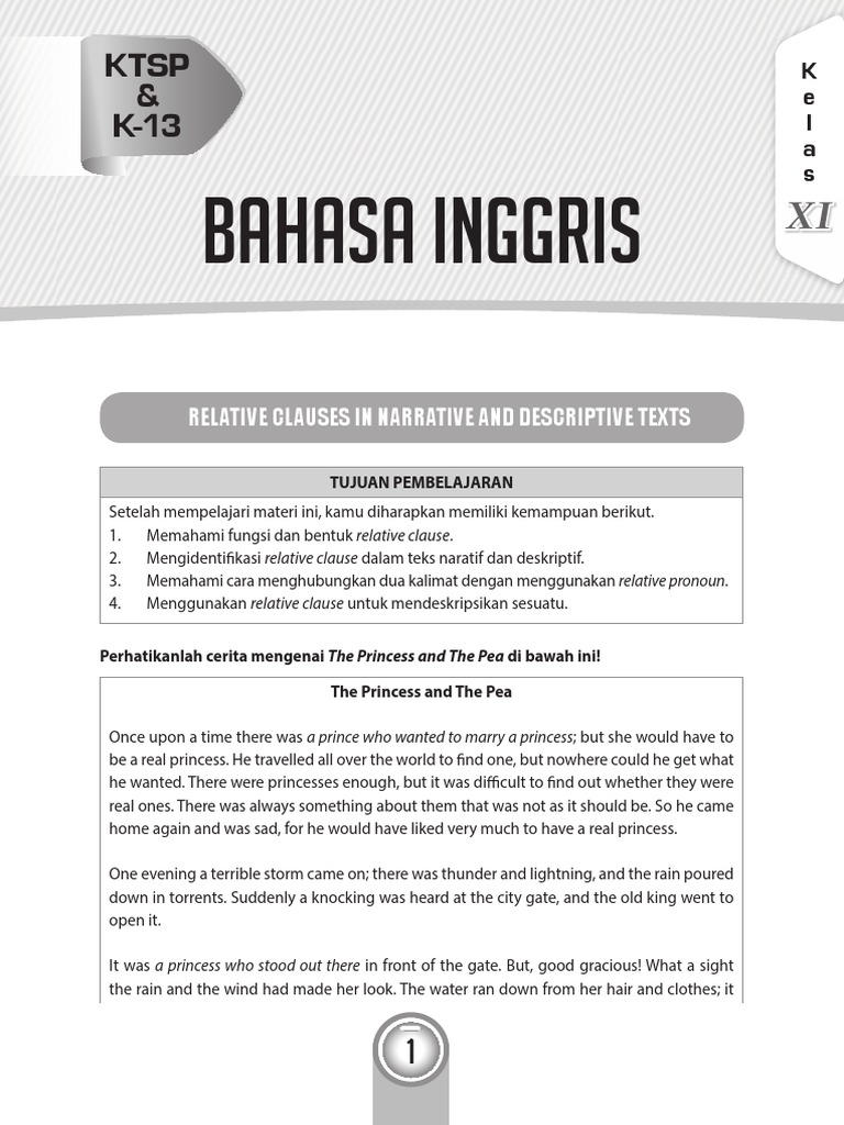 Jadi secara sederhana makna dari relative clause adalah dependent clause yang berfungsi sebagai adjective kata sifat untuk menjelaskan suatu noun kata benda dan memberikan penjelasan terhadap noun tersebut secara rinci. Relative clause biasanya juga disebut sebagai adjective clause. Itu artinya ia tidak dapat berdiri sendiri meskipun klausa ini memiliki unsur kalimat berupa subject dan verb. Indikator penggunaan relative clause dalam kalimat. The team whom you were watching has won three gold medals. These are the cookies which my mothe gives us.