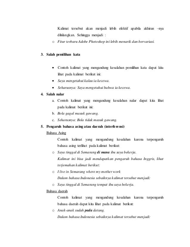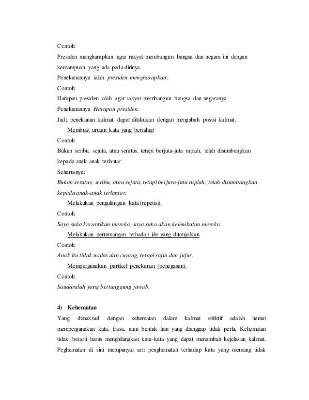Sedangkan kesenyapan bunyi di akhir kalimat dapat berupa tanda titik tanda seru tanda tanya dan lain sebagainya baca juga penggunaan. Kesenyapan bunyi pada awal kalimat biasanya berupa penggunaan huruf kapital. Dan simak contohnya berikut ini. Sedangkan yang dimaksud dengan kalimat adalah gabungan dua kata ataupun lebih. Dibawah ini akan dibagikan beberapa contoh dari kalimat efektif dan juga kalimat tidak efektif dengan lengkap. Ani bercerita tentang pengalaman di desa tidak efektif ani bercerita pengalaman di desa efektif demikianlah materi tentang kalimat efektif semoga bermanfaat dan terima kasih.