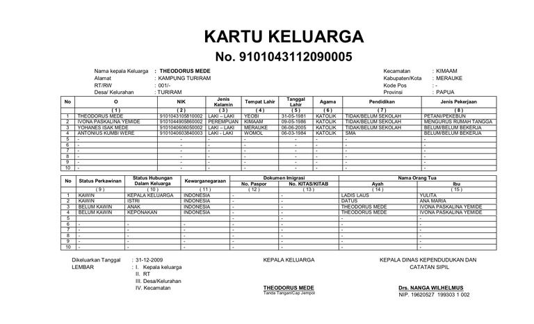 Contoh kartu keluarga terbaru. Arsip master kartu keluarga ktp dll dalam format pdf. Kartu keluarga biasa digunakan untuk melengkapi berbagai persyaratan seperti membuat ktp baru meregistrasi kartu sim operator mendaftar asuransi bpjs membuka rekening di bank mengurus surat tanah surat nikah. Download blangko kartu keluarga. Kartu keluarga adalah kartu identitas keluarga yang memuat tentang nama susunan dan hubungan dalam keluarga serta identitas anggota keluarga. Sebagai warga negara indonesia yang baik memiliki dokumen kependudukan adalah sesuatu yang wajib dilakukan. Diisi nama jalan atau kampung atau dusun atau dukuh dilengkapi dengan nomor rumah jika ada serta nomor rt dan rw kelurahandesa kabupatenkota dan provinsi contoh.