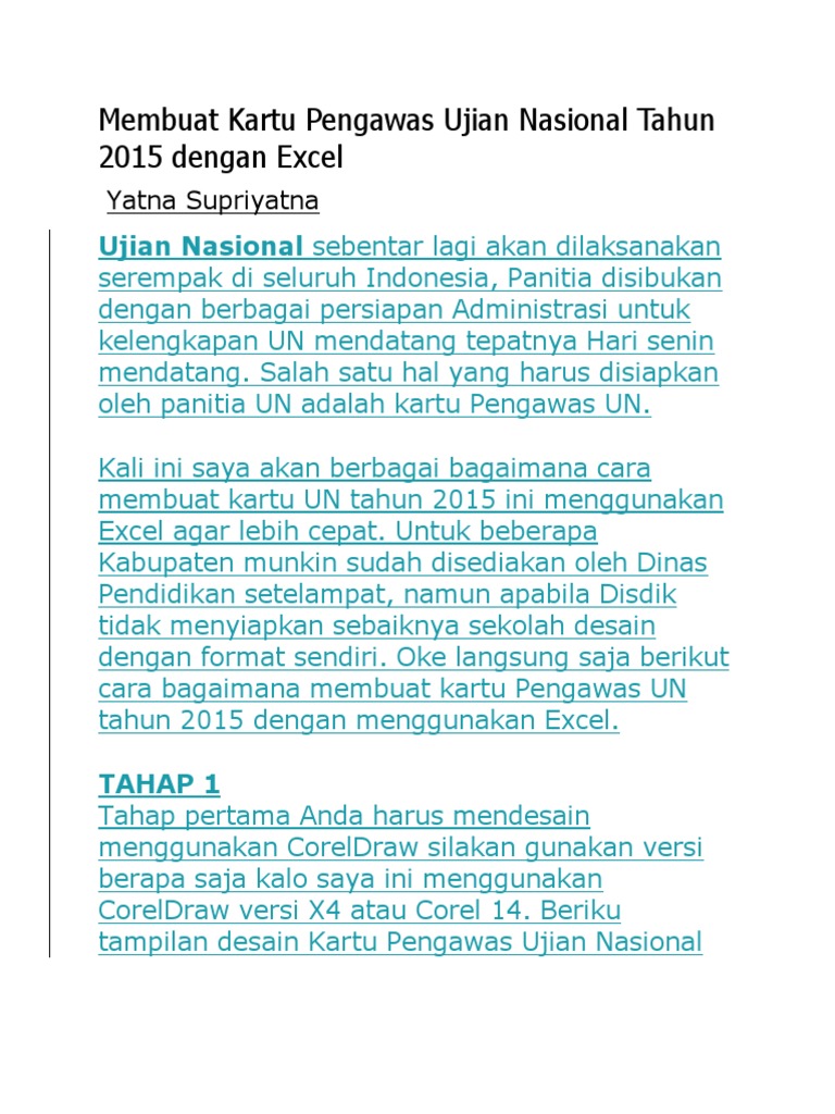 Sehingga bisa melaksanakan tugas tugas sebagai proktor dan teknisi dengan baik dan sesuai dengan harapan bersama. Aplikasi ini di share di excel indonesia user groupuntuk anda yang tertarik dengan aplikasi aplikasi pendidikan lainnya silahkan hubungi beliau dengan contact person yang ada pada menu profil pengarang dalam aplikasi ini. Dipilih saja sesuai kebutuhan yang jelas kami menyarankan supaya anda segera download aplikasi cetak kartu pengawas ujian di atas. Dengan demikian rekan rekan guru dapat memenuhi segala kebutuhan dalam proses kegiatan. Ujian nasional sebentar lagi akan dilaksanakan serempak di seluruh indonesia panitia disibukan dengan berbagai persiapan administrasi untuk kelengkapan un mendatang tepatnya hari senin mendatang. Salah satu hal yang harus disiapkan oleh panitia un adalah kartu pengawas un.