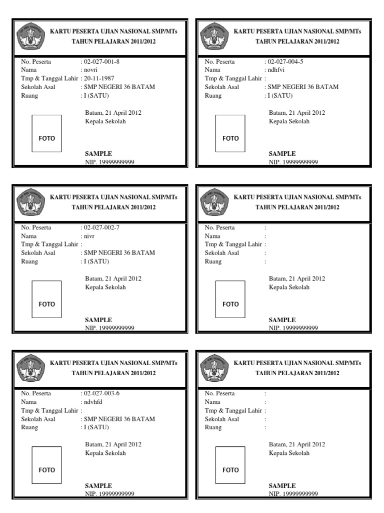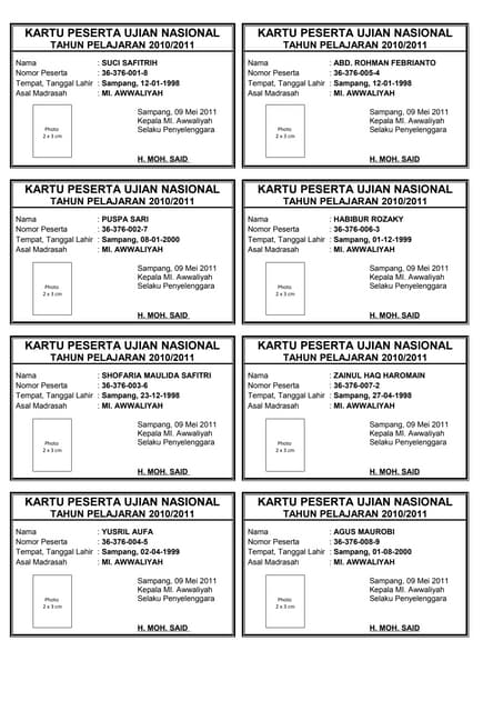 2011 2012 kartu peserta ujian sdn 04 sukabanjar kec. Buat format kartu peserta ujian di msword. Aplikasi cetak kartu ujian 2019 ini dibuat dengan memanfaatkan fungsi mailings merge salah satu cara paling mudah apabila digunakan untuk membuat kartu peserta usbn karena dengan bantuan alat ini anda bisa mencetak banyak kartu dilengkapi foto tanpa arus input satu persatu. Aplikasi cetak kartu ujian nasional sdmi tahun 2015 semoga. Insert field dari database excel mail merge. Sheet foto yang berfungsi untuk menyimpan foto peserta didik.