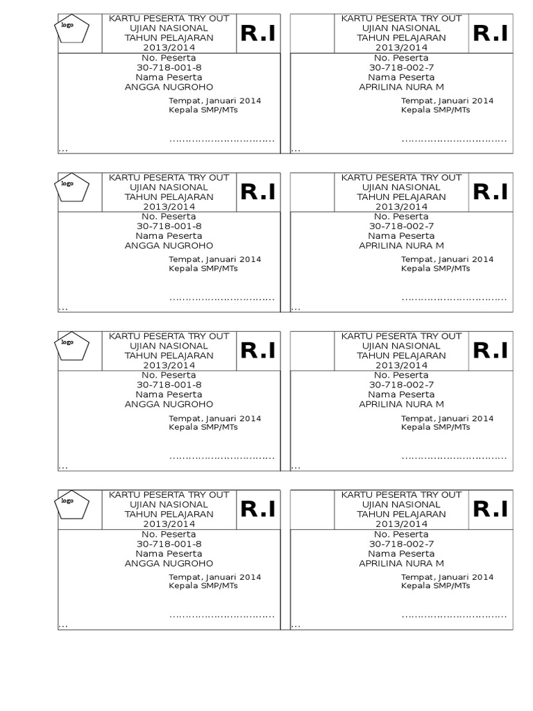 Contoh kartu peserta latihan ujian sekolah 1. Un dan ujian sekolah us untuk memudahkan bapakibu dalam membuat kartu peserta ujian baik untuk try out maupun kegiatan ujian lainnya. Login terlebih dahulu ke akun cpns di website bkn. Inilah aplikasi kartu peserta ujian nasional 2017 un rekomendasi operator sekolah program ini hampir sama seperti anda saat membuat kartu peserta ujian dengan excel tetapi dipastikan berbeda karena basic program tersebut bukan dari microsoft office excel tetapi berbasis exe dengan demikian ada beberapa persyaratan spesifikasi minimum laptop maupun komputer begitupun dengan sistem operasi. Mohon ditungguakan muncul tampilan kartu ujian ktps anda. Cara mencetak kartu peserta ujian cpns 2018 adalah.