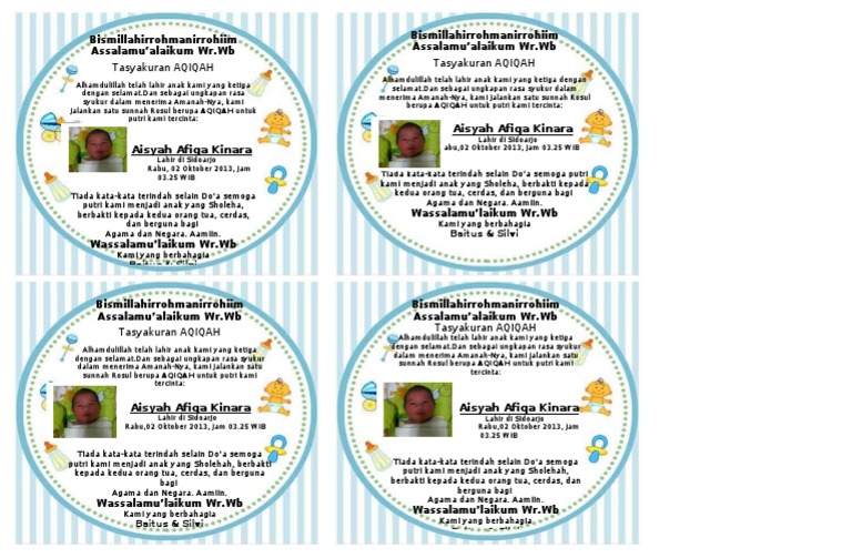 Contoh kartu ucapan aqiqah berwarna versi ms word syarif mononks. Tips mengenal kredibilitas rumah aqiqah dan dapur aqiqah terbaik untuk keluarga anda. Kartu ucapan aqiqah anak hitam putih model 2. Aqiqah merupakan sesuatu yang dianjurkan dalam islam yang biasanya dilakukan dengan pengurbanan hewan kambing sebagai bentuk rasa syukur kita. Di dalam mensedekahkan hasil sembelihan sang orang tua juga perlu.
