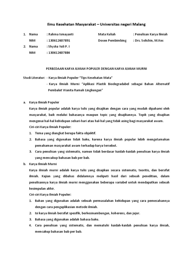 Pas banget buat kamu yang butuh referensi. Jessica huang 25 may 2019 at 1627. Namun pada penjelasan ini kami hanya akan fokus pada sebuah karya ilmiah yang berhubungan dengan kesehatan yang mana ia merupakan salah satu dari sekian jenis karya ilmiah yang sering dilakukan penelitian. Artikel kesehatan ini berisi tentang tips atau cara untuk meningkatkan kesehatan seseorang sehingga ia menjadi tidak mudah terserang penyakit. Jadi kali ini akan ada artikel contoh artikel populer singkat ilmiah yang meliputi pengertian artikel model penulisan artikel syarat syarat artikel contoh artikel populer singkat ilmiah yang tentunya akan. Contoh karya ilmiah tentang sampah.