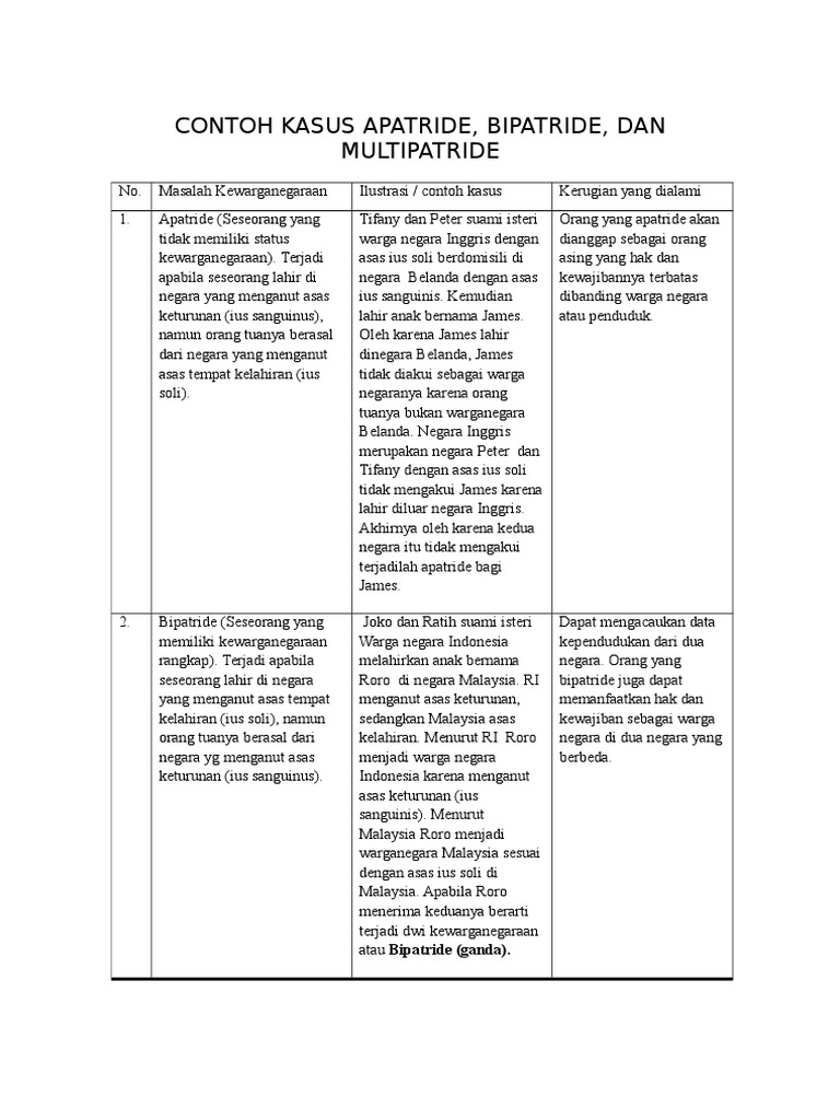 Inilah 30 contoh kasus pelanggaran ham di indonesia meliputi pelanggaran ham berat dan ringan yang terjadi di indonesia di masa orde lama orde baru dan pasca reformasi update terbaru tahun 2018 terlengkap kasus trisakti semanggi konflik poso ambon sampit papua peristiwa g 30spki kasus munir marsinah dll. Kasus kasus kewarganegaraan di indonesia juga banyak yang tidak sepenuhnya dapat diselesaikan melalui cara pertama dan kedua saja. Masalah kewarganegaraan erat kaitannya dengan masalah pengakuan atas seseorang sebagai warga negara oleh negaranya. Satu tahun setelah pernikahannya anita berlibur bersama bob ke prancis dalam kondisi hamil besar hingga pada akhirnya persalinan harus dilakukan di prancis. Untuk melengkapi artikel tersebut pada kesempatan kali ini akan kita bahas 4 asas kewarganegaraan yang berlaku di indonesia beserta contonya. Mulai dari visa izin kerja hingga berpindah kewarganegaraan.