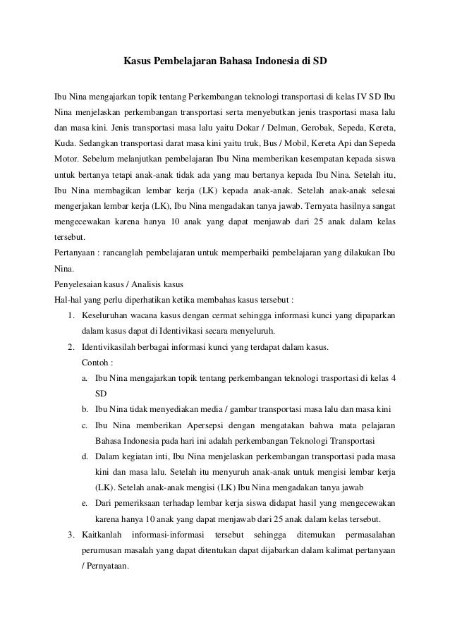 Contoh kasus tap dan pemecahannya. Bu is menjelaskan perkembangan transportasi serta menyebutkan jenis transportasi masa lalu dan masa kini. Kasus pak sartono ipa ilmu pengetahuan alam tata surya pak sartono mengajar di kelas 6 sd setiabakti. Tap merupakan serangkaian tugas berbentuk permasalahan kasus kasus atau pertanyaan yang diangkat dari masalah nyata pembelajaran bidang studibidang pengembangan yang harus dipecahkan oleh guru. Contoh kasus pembelajaran bahasa indonesia di sd. Hal ini tentu saja membuat bu ana marah dan menyuruh siswa untuk kembali ke tempat duduk masing masing. Ibu wati guru kelas iv sd negeri 1 sukasari merasa gundah ketika kepala sekolah melihat nilai ipa siswa dalam 3 kali ulangan rata rata kelasnya hanya mencapai 56.