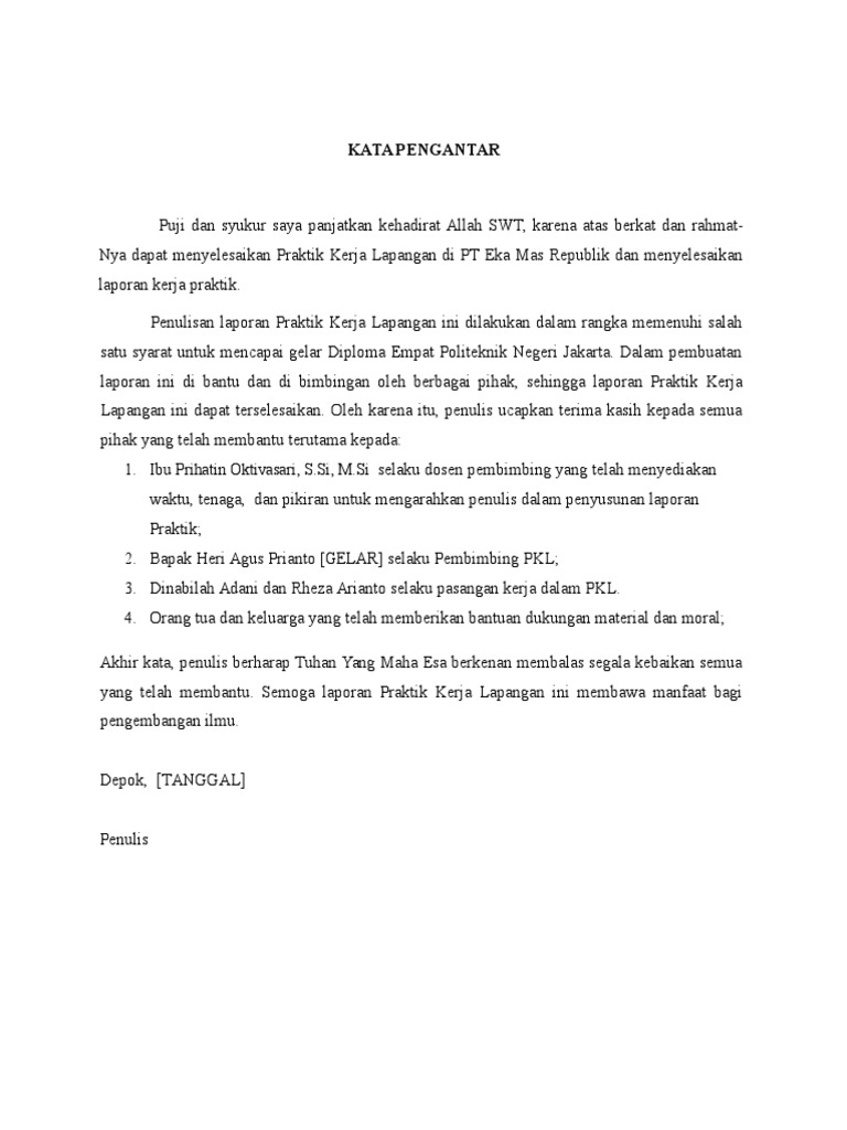 4 Kata Pengantar Laporan Pkl Untuk Pelajar Dan Mahasiswa