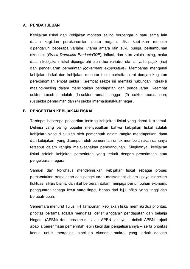Contoh kebijakan fiskal di indonesia kebijakan fiskal pengertian contoh fungsi jenis dan bentuknya dosenpendidikancom kebijakan ekonomi yang digunakan pemerintah untuk mengelola perekonomian ke kondisi yang lebih baik dengan mengatur besar penerimaan dan pengeluaran negara. Jenis kebijakan ini sangat berbeda. Kebijakan fiskal adalah kebijakan yang dilakukan oleh pemerintah dengan cara meningkatkan atau mengurangi pendapatan dan belanja negara untuk mencapai tujuan yang diharapkan seperti mengurangi jumlah penganguran atau mencapai pertumbuhan ekonomi yang sudah ditargetkan. Kebijakan fiskal ialah bentuk kebijakan pemerintah yang diterapkan untuk mengatur jalannya perekonomian dengan baik yang didalamnya termasuk pendapatan dan pengeluaran suatu negara. Instrumen utama yang digunakan untuk melakukannya adalah pengeluaran pemerintah dan pajak.
