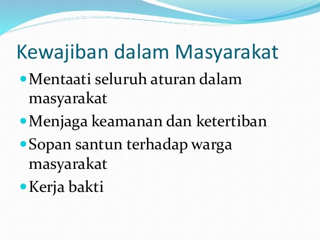 Siswa harus taat kepada guru dan kepala sekolah. Itulah beberapa kewajiban anak di sekolah maaf jika salah. Hal itu dilakukan karena setiap individu tergabung secara ikhlas untuk menjadi sebagian dari sistem pemerintahan negara kesatuan republik indonesia nkri dengan berdasar padaaturan undang 1945 dan ideologi. Contoh pengingkaran kewajiban yang tergolong hal ini ialah warga negara yang tidak peduli dengan pendidikan di lingkungan warga negara yang ikut membuat kerusuhan di negara lain dan warga negara yang. Membantu kelancaran pelajaran dikelas. Membantu kelancaran pelajaran dikelas.