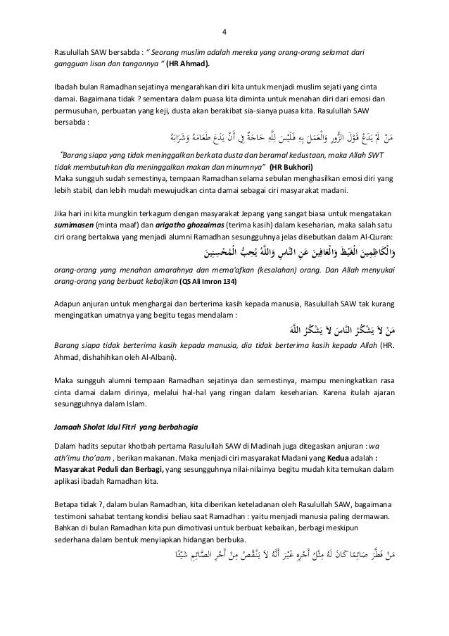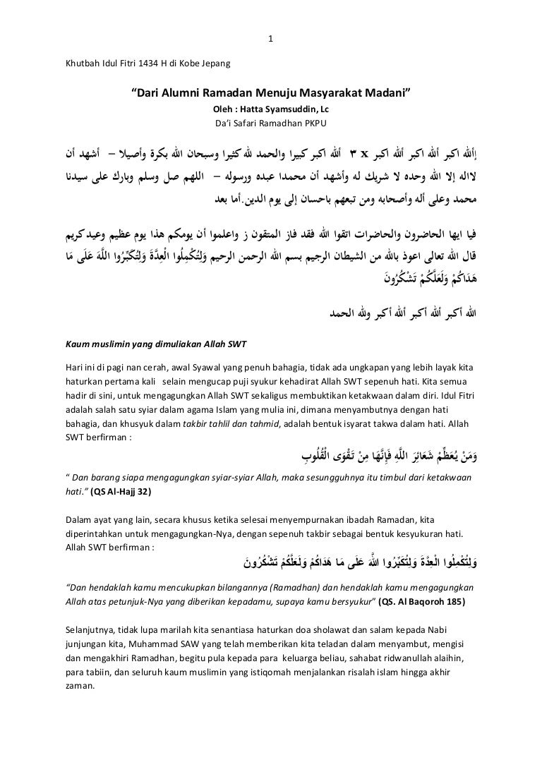 Menjaga hati tiga pesan ramadhan assalamualaikum warahmatullahi wa barakatuh. Pada kesempatan kali ini duta dakwah akan menyampaikan khutbah hari raya fitri tentang. Disebutkan pula sebagai rajanya hari. Contoh teks materi khutbah idul adha 1440 h 2019 singkat. Apabila khutbah hari raya idul fitri dilakukan sebelum shalat ied maka hal itu tak dianggap dan khutbah diulangi seusai. Khutbah idul fitri singkat edisi terbaru 2020 m 1441 h pesan dan kesan ramadhan yang harus dipegang teguh bersama.