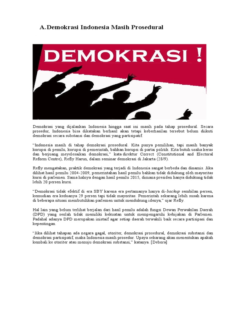Memperhatikan hal hal yang diuraikan di atas tentang demokrasi berdasarkan pancasila atau demokrasi indonesia maka demokrasi yang sekarang berlaku dan berjalan di indonesia amat besar kekurangannya bahkan banyak aspeknya yang secara mendasar bertentangan dengan pancasila. Bahkan konstitusionalisme pun terancam demokrasi kuantitatif terjebak dalam formalitas demokrasi wacana publik yang berkembang dangkal dan miskin subtansi. Contoh kliping kliping tentu. Contoh gambar demokrasi beserta keterangannya on. Cara membuat kliping yang baik dan benar beserta contoh kliping pengertian susunan dan cover. Cerita pendek yang sesuai dengan namanya adalah sebuah.