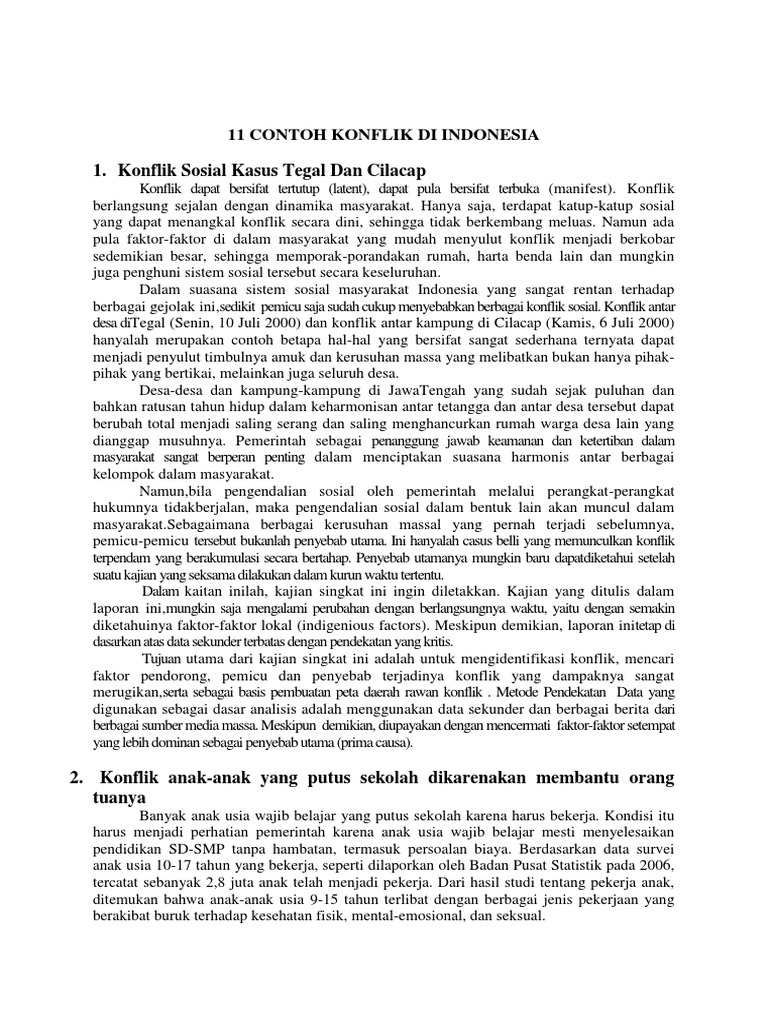 Konflik sampit adalah pecahnya kekerasan antar etnis di indonesia dimulai pada februari 2001 dan berlangsung sepanjang tahun. Contoh konflik sosial di indonesia 1. Di indonesia yang penuh keberagaman ini konflik sudah. Dulu negara prancis terjadi konflik yang sangat berat sekali sehingga diperlukan cara untuk mengatasinya. Hal ini merupakan salah satu yang fenomenal di tanah air. Konflik politik merupakan konflik yang terjadi karena adanya perbedaan kepentingan yang berkaitan dengan kekuasaan.