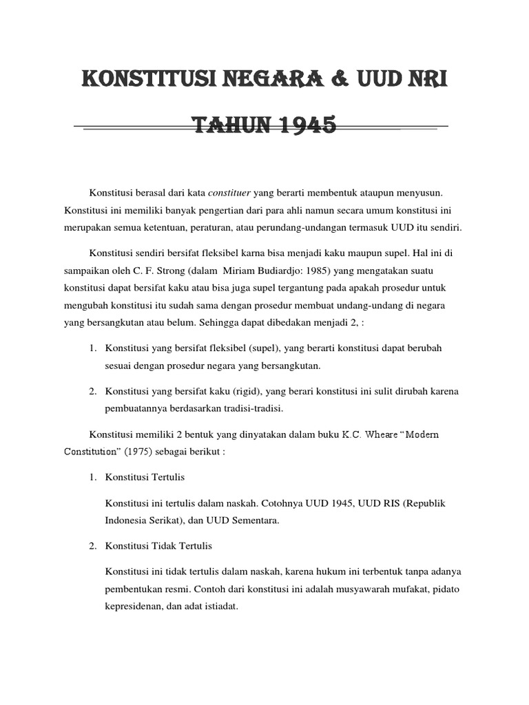 Mulai dari pengertian fungsi konstitusi dan contoh konstitusi tertulis dan tidak tertulis secara detil. Contoh konstitusi tidak tertulis on. Ada beberapa keuntungan konstitusi yaitu. Konstitusi tidak tertulis berasal dari kebiasaan yang berulang kali dan terus dipelihara dalam praktik penyelenggaraan kedaulatan di suatu negara. Konstitusi tidak tetulis dalam perumusannya tidak membutuhkan proses yang panjang misalnya dalam penentuan quorum model perubahan amandemen atau pembaharuan dan prosedur perubahannya referendum konvensi atau pembentukan lembaga khusus. Di sisi lain asal hukum dari konstitusi tertulis ialah segala hal yang perlu diatur dalam rangka penyelenggaraan kehidupan berbangsa dan bernegara atau perubahan dari peraturan perundang undangan yang telah ada sebelumnya.