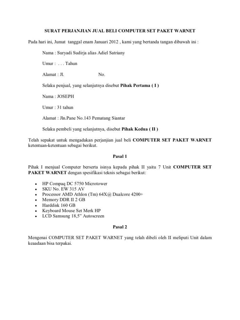 Penjual berkewajiban menyerahkan tanah kepada pihak pembeli dan dan. Langsung saja berikut penjelasannya. Contoh surat perjanjian jual beli surat perjanjian juga sangatlah penting dalam sebuah transaksi jual belinahapa itu surat perjanjian jual beli. Perbedaannya adalah bahwa surat ini hanya bersifat pengikat atau surat awal yang digunakan untuk mengikat antara penjual dan pembeli. Surat perjanjian jual beli adalah surat yang dibuat oleh penjual dan pembeli untuk menerangkan atau menjelaskan hak dan kewajiban kedua belah pihak. Contoh surat perjanjian pengikatan jual beli rumah sppjb ini diperlukan ketika terjadi transaksi jual beli antara 2 pihakapa bedanya dengan surat jual beli biasa.