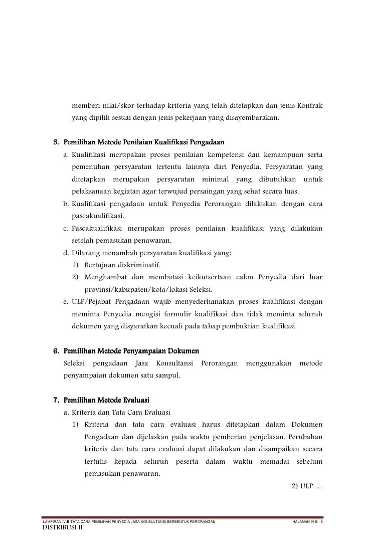 Seleksi umum metode evaluasi kualitas satu sampul 34 2. Contoh kontrak konsultan dengan perusahaan. Untuk waktu tertentu kontrak no. Pemilihan jenis kontrak 15 10. Proses pemilihan penyedia jasa konsultansi berbentuk perorangan 34 1. 200 juta dilakukan akan dilakukan pelelangan sedangkan untuk konsultan yang berlaku pelelangan adalah paket pekerjaan di atas rp.