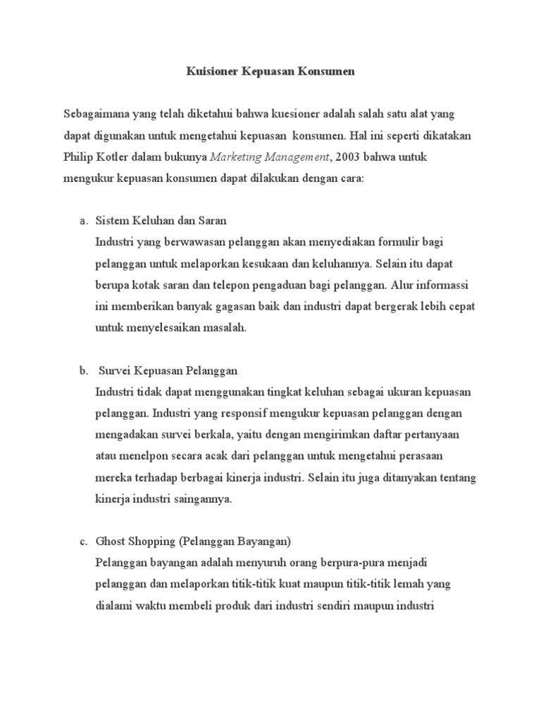 Contoh kuesioner kepuasan pelanggan doc. Contoh kuesioner kuesioner merupakan sebuah cara bagi seseorang yang ingin mengumpulkan informasi tentang suatu hal yang bersumber dari banyak orang.