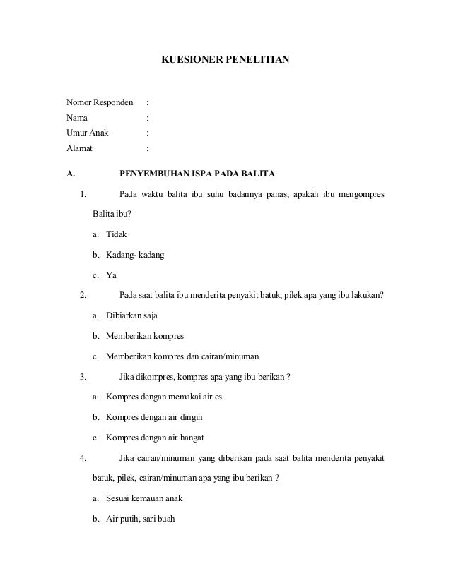 Contoh kuesioner penelitian kesehatan. Sinar inesco tasikmalaya oleh. Contoh kuesioner sekolah tinggi ilmu kesehatan faletehan. Program studi kesehatan masyarakat. Kuesioner ini merupakan kuesioner yang penulis susun dalam rangka pelaksanaan penelitian.