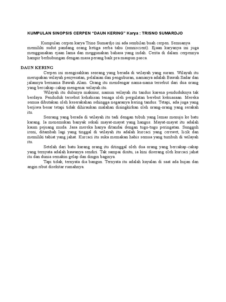 Contoh kumpulan cerpen beserta sinopsisnya. Google facebook twitter newer post older post search here. Di siang hari yang cerah saya sedang dalam perjalanan pulang kerumah entah mengapa saya selalu terpikirkan akan sosok kakek saya. Kainsuteracom cinta terkadang datang dengan tiba tiba begitu juga dengan cerpen dibawah ini walaupun ceritanya sangat singkat namun bagus juga untuk dibaca siapa tahu alur ceritanya pas banget dengan apa. Contoh cerpen dan unsur intrinsiknya beserta sinopsisnya. Related posts to contoh cerpen dan sinopsisnya share to. Untuk selengkapnya bisa disimak di bawah ini.