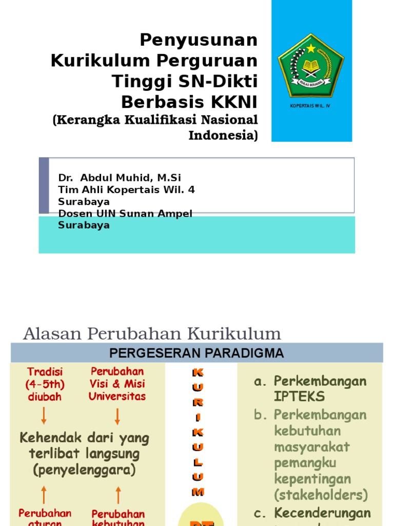 Alih alih menyebutkan kurikulum berbasis kkni maka sebut saja kpt ataupun jika tetap ingin memasukkan kata kkni dalam penyebutannya dapat saja digunakan frasa kurikulum sesuai kkni. Diploma supplement sept 2013 revisi. Sedangkan kurikulum berbasis kerangka kualifikasi nasional indonesia kkni adalah kerangka penjenjangan kualifikasi kompetensi yang dapat menyandingkanmenyetarakan dan mengintegrasikan antara bidang pendidikan dan pelatihan kerja serta pengalaman kerja dalam rangka pemberian pengakuan kompetensi kerja sesuai dengan struktur pekerjaan di berbagai sektor. Tetapi ia merupakan seperangkat alat pembelajaran yang mengintegrasikan berbagai sumber daya untuk mengolah masukan menjadi luaran yang memiliki nilah lebih sehingga ada konsekuensi di dalam pemberlakuannya. Pengembangan kurikulum berbasis kkni program studi s1 dan s2 matematika jurusan matematika fmipa unand senin selasa 27 28 maret 2017 oleh sri wahyuni ketua unit kurikulum dep. Selectivity rekrutmen program studi dan akreditasi.