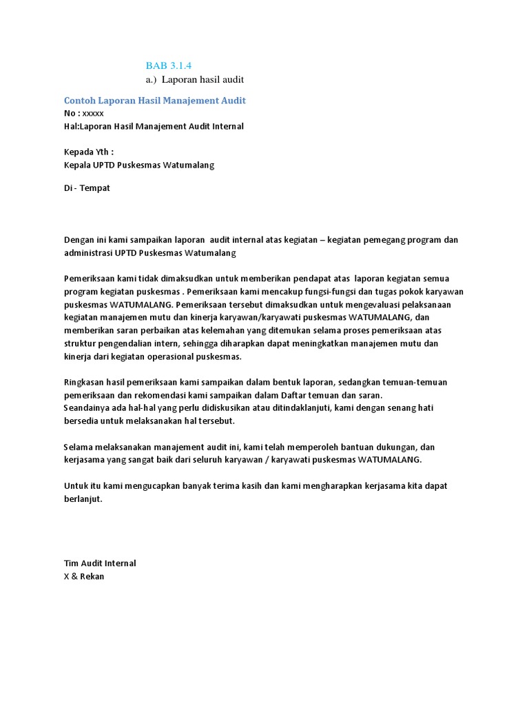 Audit internal pengertian tujuan ruang lingkup dan tugas dalam hal ini biasanya audit internal dilakukan oleh unit yang berada di dalam perusahaan yang memang ditugaskan untuk melakukan audit terhadap perusahaan yang bersangkutan pelaksana dari audit internal ialah auditor internal. Manajer bagian audit internal. Temuan audit mengenai uang muka perjalanan. Pelaksana dari audit internal atau auditor internal biasanya ada pada perusahaan besar dimana. Contoh format laporan internal audit dapat dilihat pada lampiran 4. Contoh laporan audit internal contoh laporan audit internal contoh laporan audit wtp contoh laporan audit internal perusahaan contoh laporan contoh laporan pkl contoh laporan magang contoh laporan ppl contoh laporan audit contoh laporan harian for internal audit district units peripherals ksaps appointment contoh source.