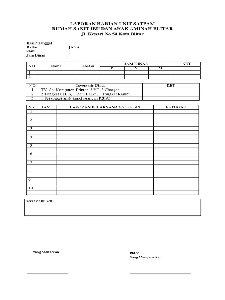 Contoh format laporan bulanan satpam. Oleh karena itu instruksi kerja yang dapat menyimpan format untuk setiap proyek akan difasilitasi. Silahkan anda download form form satpam di bawah ini. Form laporan kejadian.
