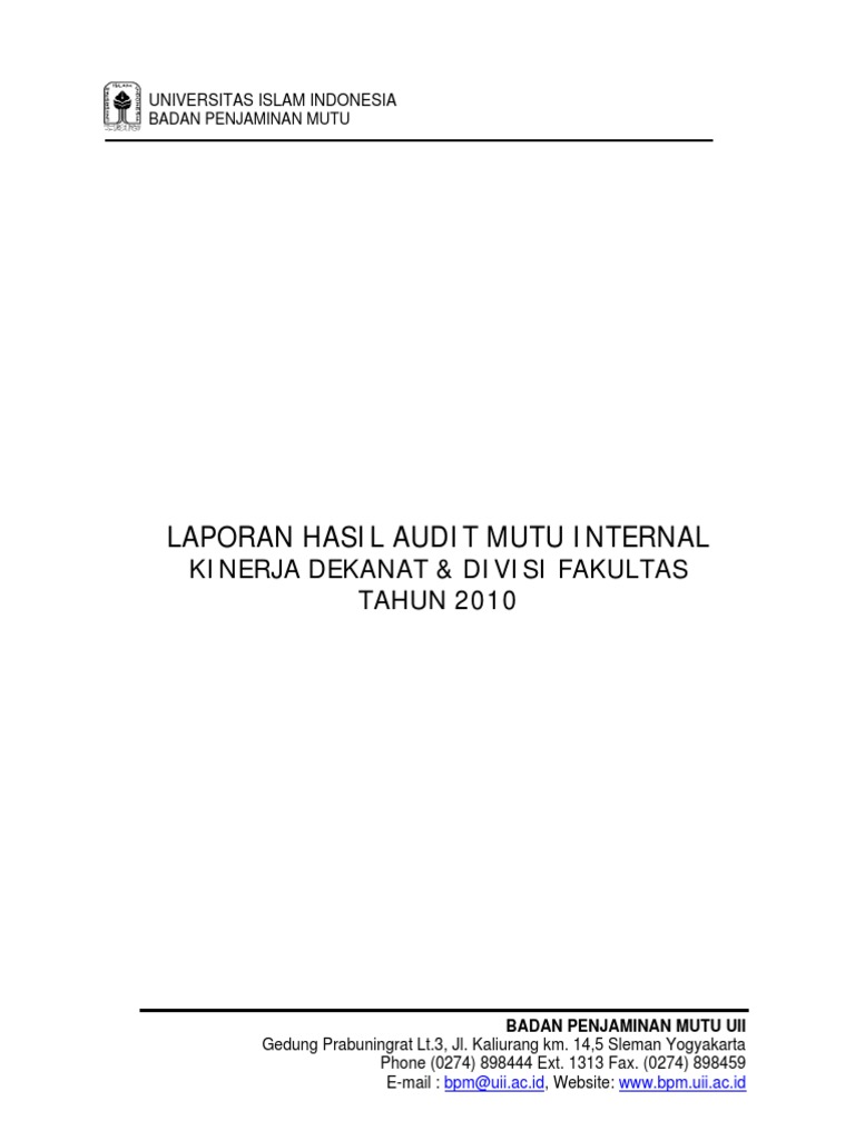 Semoga bermanfaat terima kasih. Laporan hasil audit mutu internal perguruan tinggi. Klik untuk membagikan di facebookmembuka di jendela yang baru. Sebagai sumber referensi untuk perencanaan audit berikutnya. Sebagai bukti pelaksanaan tugas 2. Analisa hasil audit mutu internal ami berdasarkan hasil audit mutu internal periode agustus 2015 didapatkan bahwa jumlah temuan umum yang terdapat di prodi lebih banyak.