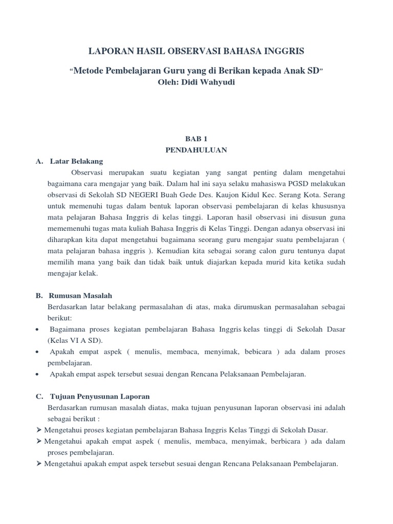 Contoh laporan hasil observasi sekolah. Oleh gurupendidikan diposting pada 29052020. Teks laporan adalah teks yang berisi penjabaran umummelaporkan sesuatu berupa hasil dari pengamatan observasi. Contoh teks laporan hasil observasi observasi dalam suatu penelitian yaitu salah satu teknik dalam pengumpulan data yang digunakan dalam suatu penelitian tertentu. Universal berarti teks laporan hasil observasi tidak tendensi atau memihak pada satu pihak tertentu. Teks laporan hasil observasi. Contoh laporan hasil observasi lingkungan sekolah.