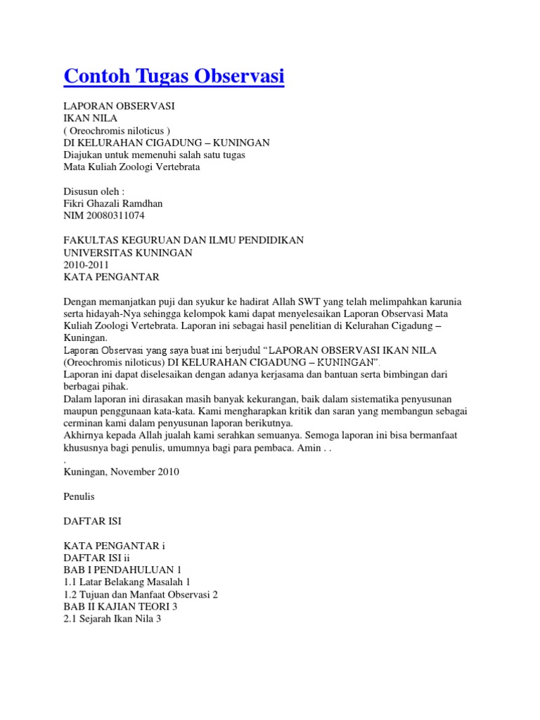 Rumah adalah tempat pendidikan pertama kali bagi seorang anak dan merupakan tempat yang paling berpengaruh terhadap pola hidup seorang anak. Contoh teks laporan hasil observasi tahukah kalian observasi merupakan sebuah penelitian yang salah satu teknik dalam pengumpulan datanya digunakan dalam suatu penelitian tertentu.