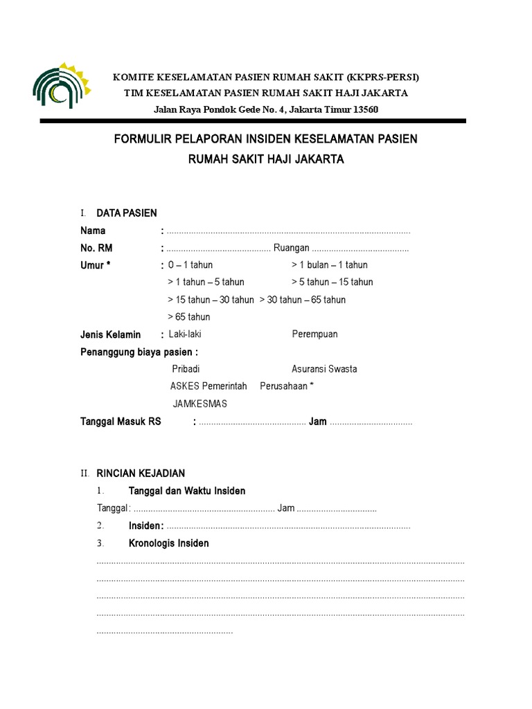 Laporan insiden keselamatan pasien kkp rs eksternal laporan insiden keselamatan pasien kkp rs eksternal adalah pelaporan secara anonim dan tertulis ke kkp rs setiap kondisi. Format laporan insiden keselamatan pasien akremas.