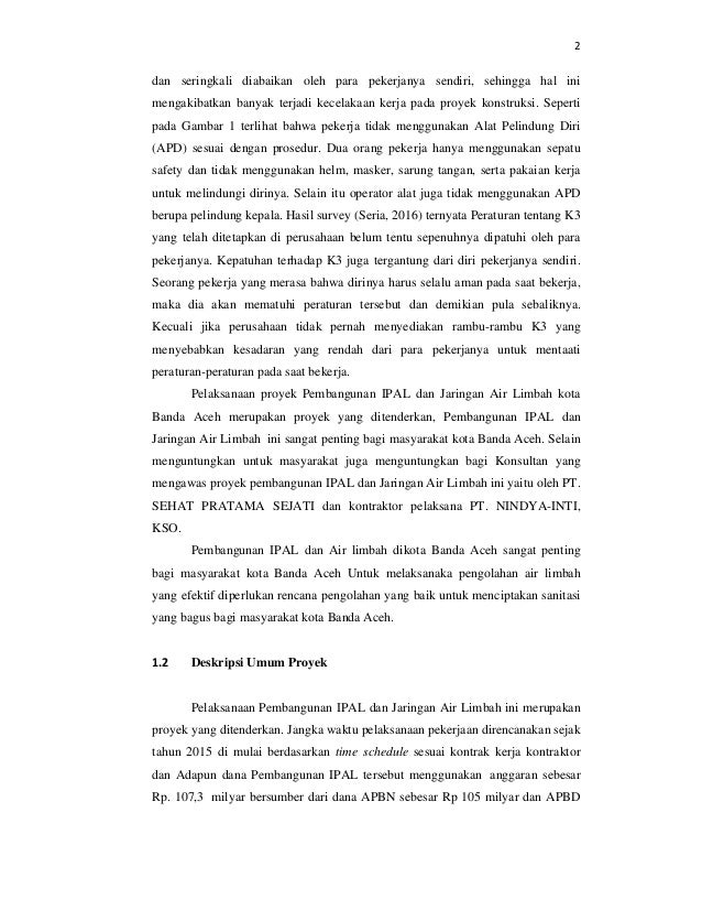Pedoman yang selanjutnya disingkat sebagai pedoman k3 konstruksi ini merupakan pedoman yang dapat dianggap sebagai standar k3 untuk konstruksi di indonesia. Dampak negatif terhadap lingkungan gedung itu sendiri dari aktivitas manusia. Contoh laporan bulanan k3 konstruksi. Laporan tersebut dibuat oleh sekretaris p2k3 atau ahli k3 yang telah ditunjuk oleh pimpinan perusahaan sehingga laporan tersebut harus diketahui dan ditandatangani oleh ketua p2k3 pimpinan perusahaan. Contoh dokumen ini mencakup pembagian tugas struktur dan analisa bahaya. Menerapkan prinsip prinsip kerja sesuai ketentuan k3 di lingkungan proyek.
