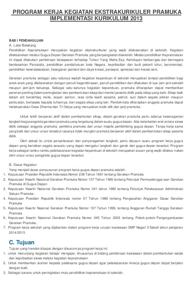 Program Kerja Kegiatan Ekstrakurikuler Pramuka Implementasi