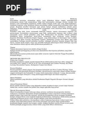 Contoh laporan kegiatan pelatihan guru. Pre test and post test. Kelengkapan diklat yang dijadikan bahan penilaian adalah surat tugas asli foto kopi sertifikat diklat yang dilegalisir dan laporan diklat yang asli. Latar belakang penyuluhan pertanian merupakan upaya yang dilakukan dalam rangka meningkatkan kemampuan petani baik pengetahuan sikap dan keterampilan sehingga mereka mampu dan berdaya serta menetapkan keputusan sendiri terkait dengan usaha tani yang dilaksanakannya. Tujuan kegiatan pelatihan ini adalah sebagai upaya untuk meningkatkan mutu pendidikan dan menciptakan tenaga pendidik yang profesional. Berikut ini adalah contoh dari laporan kegiatan pelatihan online. Tujuan dibuatnya laporan kegiatan.