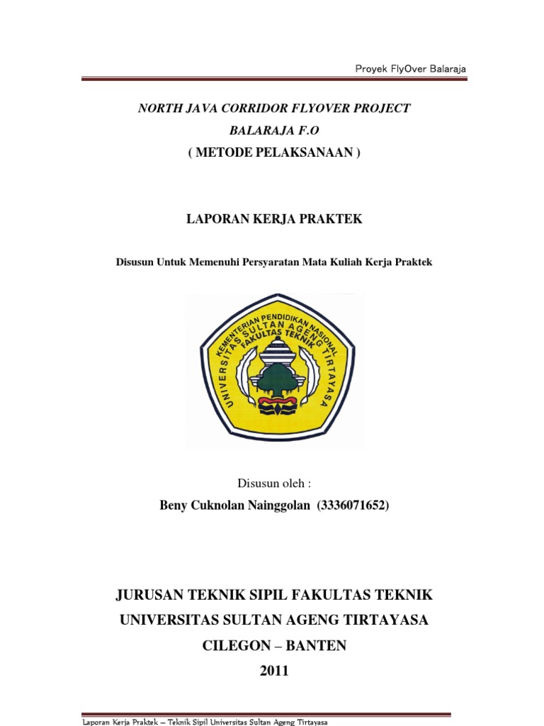 Laporan kerja praktik teknik sipil. Pkl yang di maksud disini yaitu singakatan dari praktek kerja lapangan dimana sudah mejadi program wajib akademik sebagai mahasiswa teknik sipil harus menjalankan prakter kerja secara langsung dilapanganbaik di instansi pemerintahan yang berhubungan dengan teknik sipil ataupun pada perusahan perusahan proyek konstruksi. Departemen pekerjaan umum direktorat jenderal bina marga. 1410503078 jurusan teknik sipil fakultas teknik universitas tidar 2018. Laporan praktek kerja lapangan pkl teknik sipil bab i.