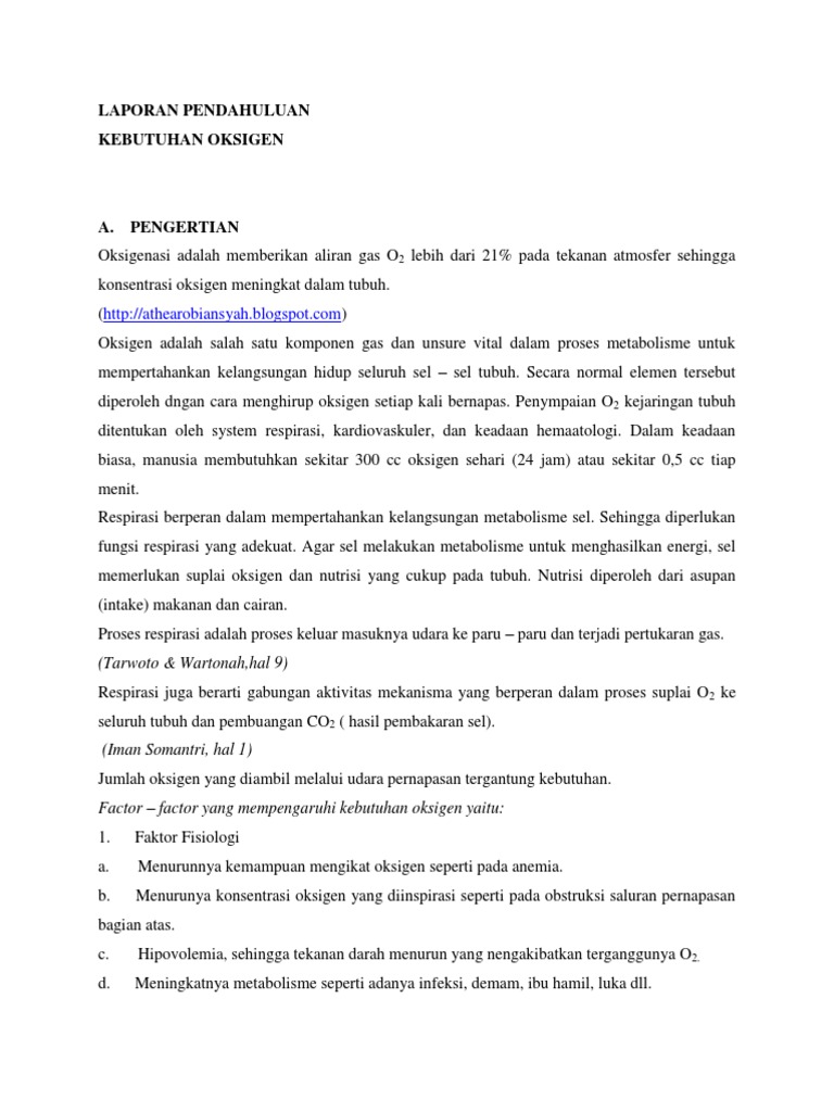 Contoh laporan pendahuluan oksigenasi. Definisi congestive heart failure chf adalah suatu kondisi dimana jantung mengalamiudjianti 2010. Dengan gangguan pemenuhan oksigenasi. Oksigenasi merupakan gas tidak berwarna dan tidak berbau yang sangat dibutuhkan dalam proses metabolisme sel. Apabila lebih dari 4 menit orang tidak mendapatkan oksigen maka akan berakibat pada kerusakan otak yang tidak dapat diperbaiki dan biasanya. Laporan pendahuluan gangguan pemenuhan oksigenasi minggu 03 juni 2012. Oksigenasi merupakan gas tidak berwarna dan tidak berbau yang sangat dibutuhkan dalam proses metabolisme sel.