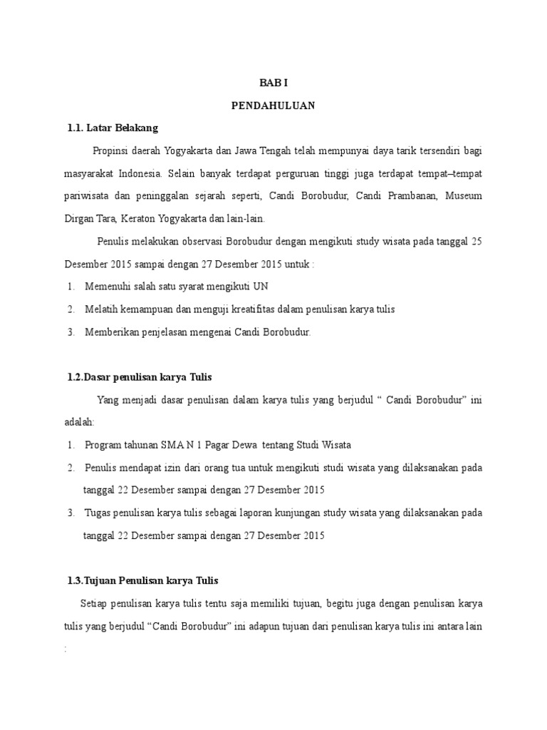 Disitu banyak berbagai tempat tempat obyek pariwisata yang sangat penting bersejarah dan mempunyai keunikan tersendiri dengan ciri khasnya masing masing. Laporan perjalanan wisata study tour smpn 4 tasikmalaya ke jogja. Yogyakarta juga memiliki banyak candi berusia ribuan tahun yang merupakan peninggalan kerajaan kerajaan besar jaman dahulu di antaranya adalah candi borobudur yang dibangun pada abad ke 9 oleh dinasti syailendraselain warisan budaya yogyakarta memiliki panorama alam yang indah dan atmosfir kesenian yang sangat kental didalamnya. Kesimpulan yang telah saya peroleh dari perjalanan study tour saya ke yogyakarta yaitu. Puji syukur kami panjatkan kehadirat tuhan yang maha esa karena dengan rahmat karunia serta taufik dan hidayah nya kami dapat menyelesaikan laporan perjalanan study tour ke yogyakarta. Laporan perjalanan adalah laporan hasil perjalanan atau kunjungan ke suatu tempat.