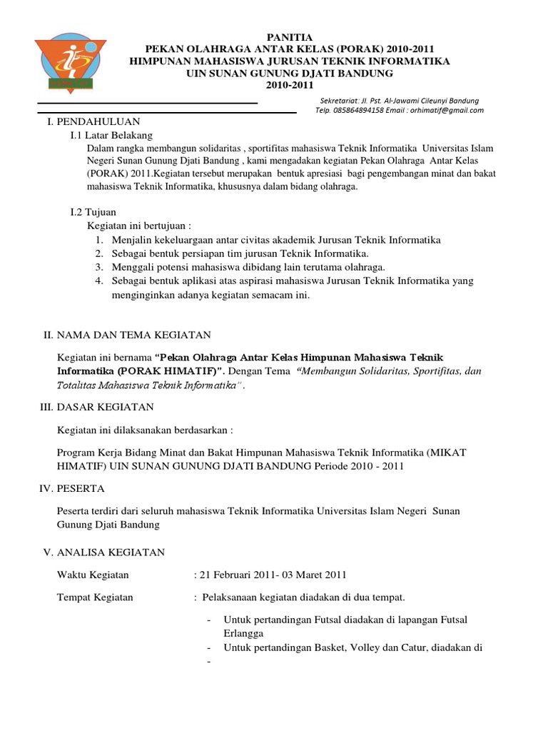 Contoh laporan hasil kegiatan olahraga menpora akan beri penghargaan kepada atlet dan pelatih yang berprestasi di internasional olahraga nasional ke xxx tahun 2013 dengan tema olahraga mewujudkan jati diri bangsa. Untuk mendownload contoh proposal pertanggung jawaban klik disini yang bersumber dari academiaedu. Olahraga merupakan bagian dari program pembangunan manusia seutuhnya yang harus diselenggarakan secara bertahap berjenjang dan. Academiaedu is a platform for academics to share research papers.